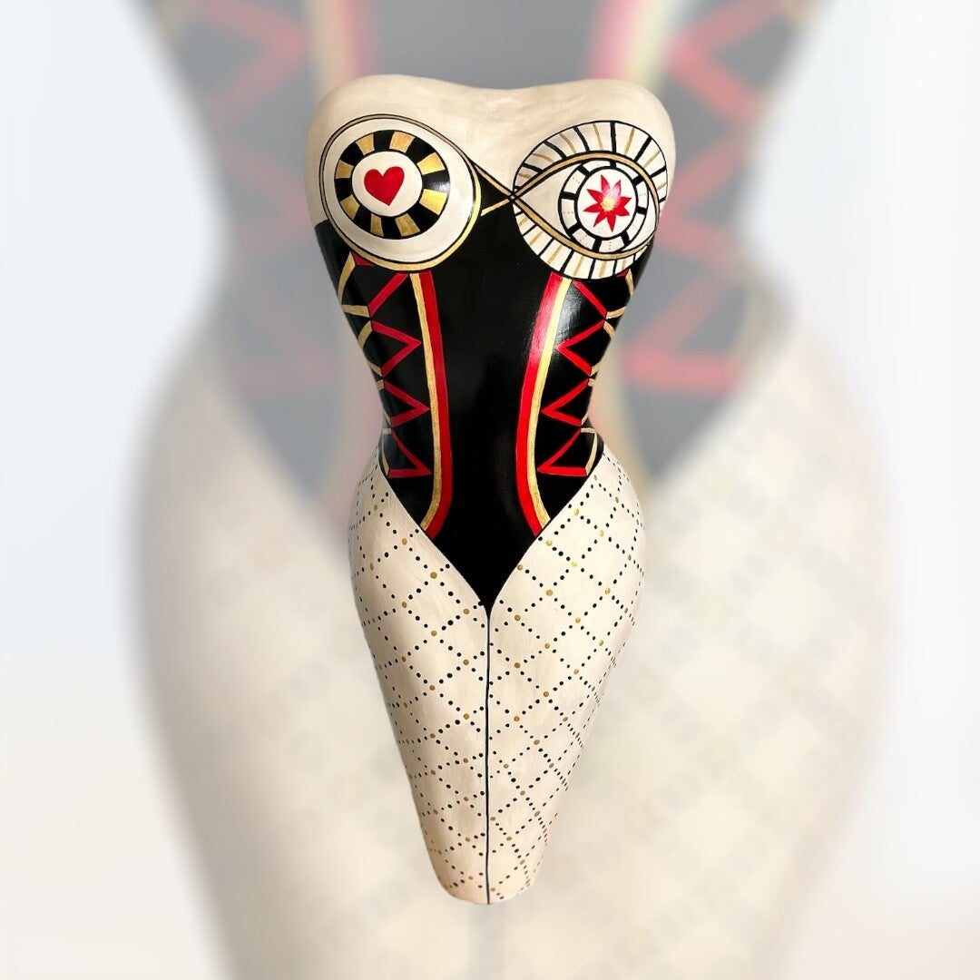 De torso's zijn volledig met de hand opgezet en beschilderd, ieder uniek in detail en vorm. Persoonlijke wensen kunnen worden verwerkt in de vorm, maat en in de beschildering.